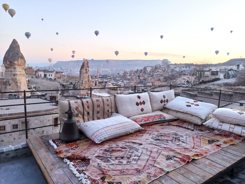 Sabah kahvaltısı, kaliteli ve zengin seçenekleriyle günü enerjik başlatmaya yardımcı olur. Otel, geniş seyir terasları ve yeterli otopark imkanıyla da pratik kolaylıklar sunmaktadır. Göreme’de unutulmaz bir konaklama için ideal seçimdir.