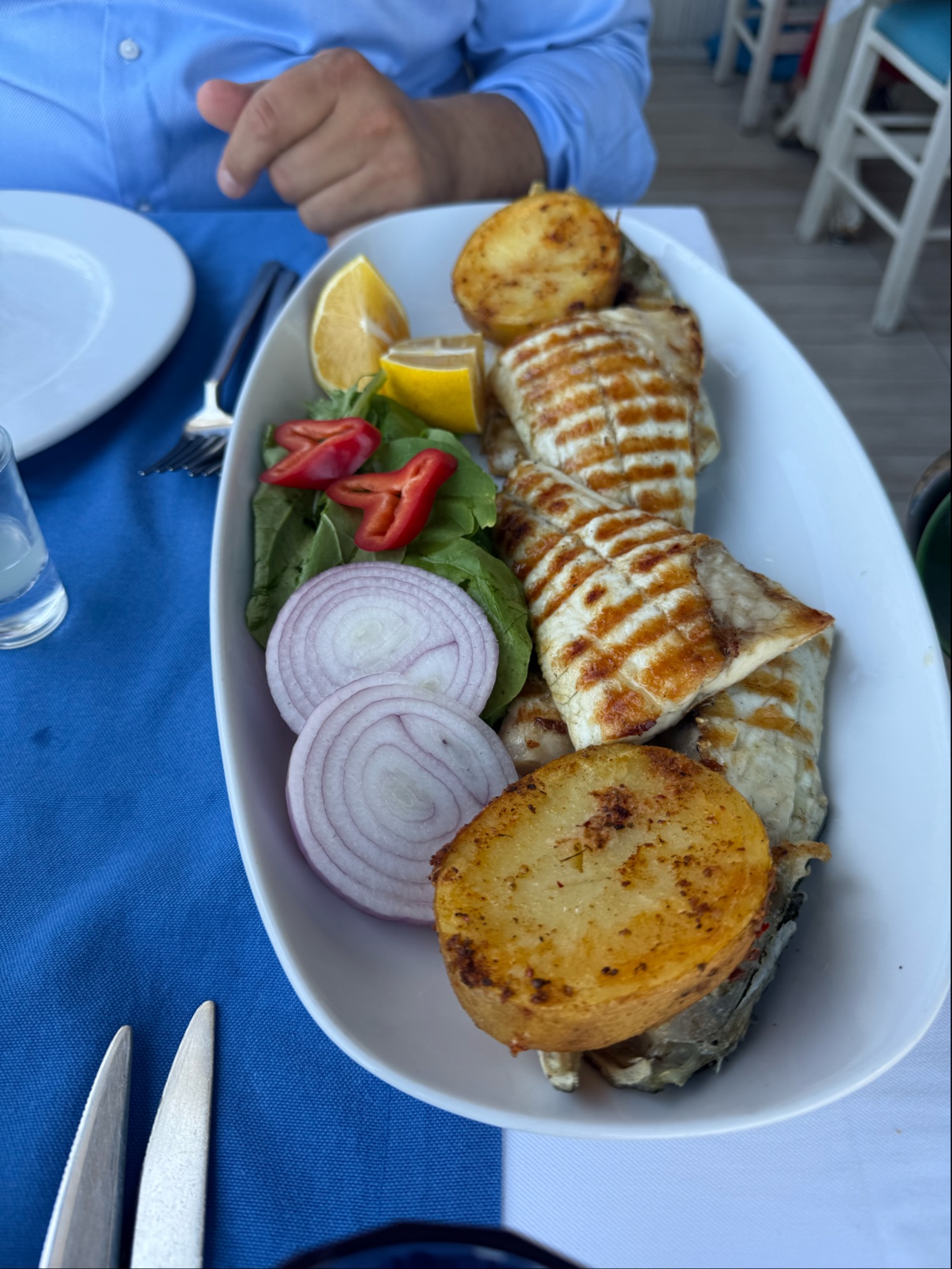 Mekanın atmosferi ise yazılı yorumlarda sıkça vurgulanan bir güç noktası. Arkada akan sakin Yunan müzikleri konuşmaların rahatsız olmayacak tondadır ve restoranın dış alan ile iç alan ayrımı sigara içmeyen müşteriler için konforlu bir ortam sağlıyor. Özel günler, doğum günleri ve romantik akşamlar için tercih edilebilecek bir destinasyon olarak öne çıkıyor.
