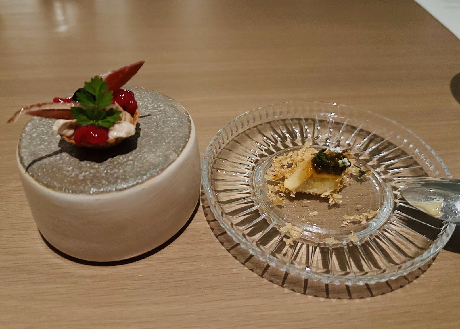 Masalara sunulan 3-4 aşamalı prix fixe menüler, sayısız ikram ve şarap eşleştirmeleriyle 3-4 saatlik bir yolculuk niteliğinde. Obruk peyniri, tereyağlı ekmekler ve açık dolma gibi başlangıç ikramlarından tatlılar için gelen şef ziyaretine kadar her detay özenle tasarlanmış. Servis ekibi ve personel, yemeğin her aşamasında yardımcı ve güleryüzlü bir yaklaşımla misafirlerin rahatını sağlıyor. Özel günler için ek ikramlar ve anı fotoğrafları hediye etmek, restoranın misafirperverliğinin bir göstergesi.
