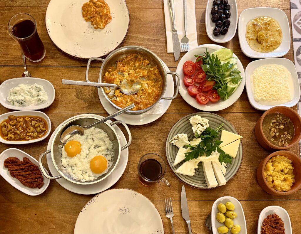 Van Kahvaltı Evi, Beyoğlu’nun kalbinde yer alan ve İstanbul’un en sevilen kahvaltı mekanlarından biri. Burada sunulan serpme kahvaltı, özenle seçilmiş yöresel ürünler, taze ekmekler ve muhteşem kaymakla birleşerek unutulmaz bir deneyim yaratıyor. Her porsiyon kaliteli malzemelere ve detaylı bir sunuma işaret ediyor; yediğiniz her şey lezzet ve özgünlüğün tanımlaması.